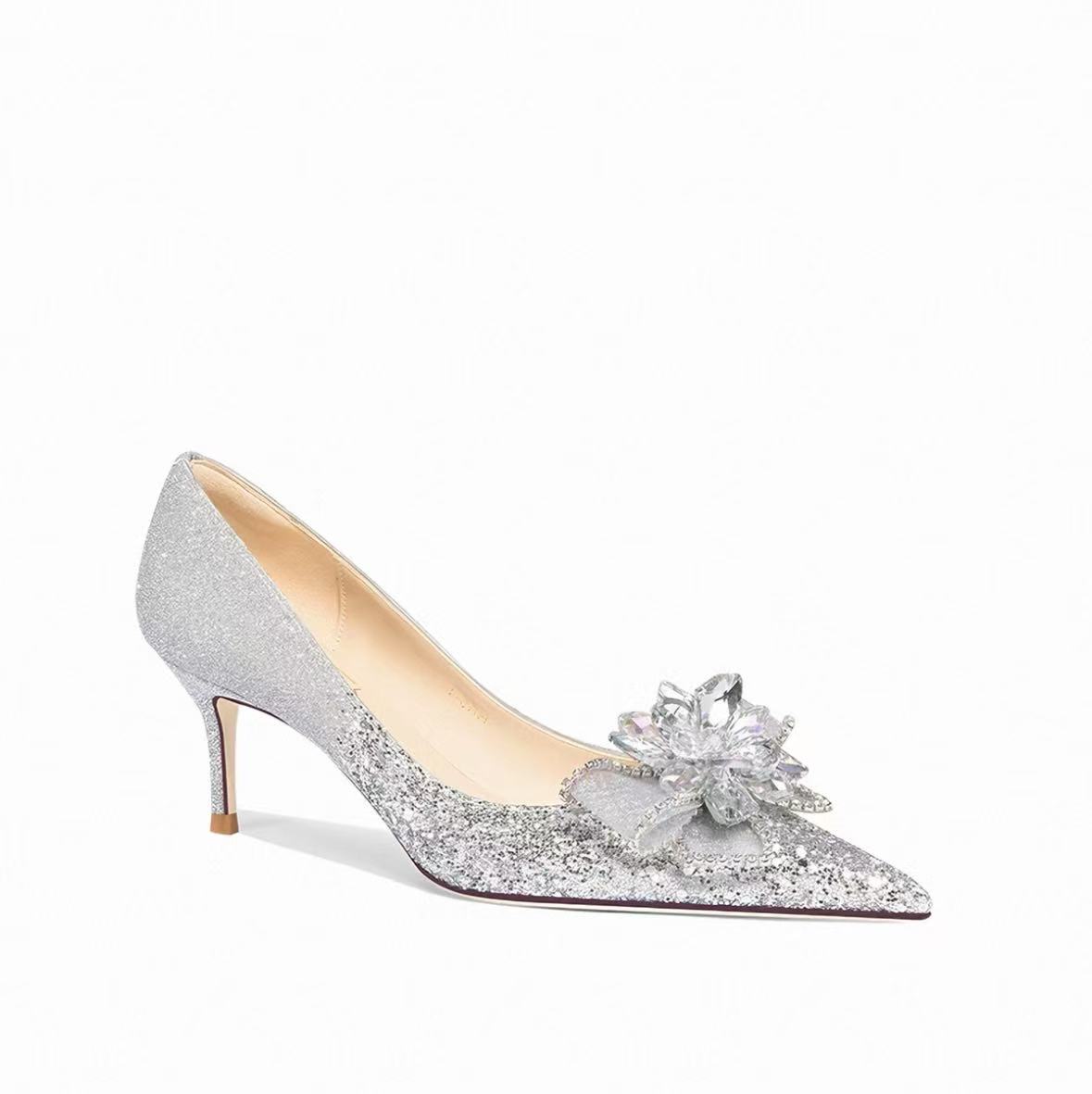 LOLY水晶鞋礼物高跟鞋仙女尖头细跟空气棉婚鞋情人节送女友礼服鞋